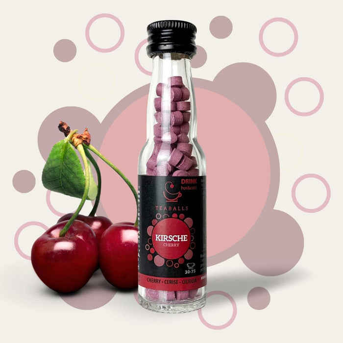 Bereit für einen Kirschgenuss, der alle Sinne verführt? TEABALLS Kirsche Black Edition in der Flasche ist ein einzigartiger Tee, der nicht nur köstlich schmeckt, sondern auch nachhaltig und gesund ist.