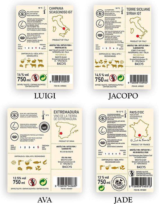 BACCYS Probierpaket BBQ trocken und fruchtig - 4 x 0.75L